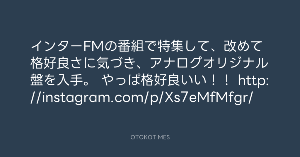 インターFMの番組で特集して、改めて格好良さに気づき、アナログオリジナル盤を入... -