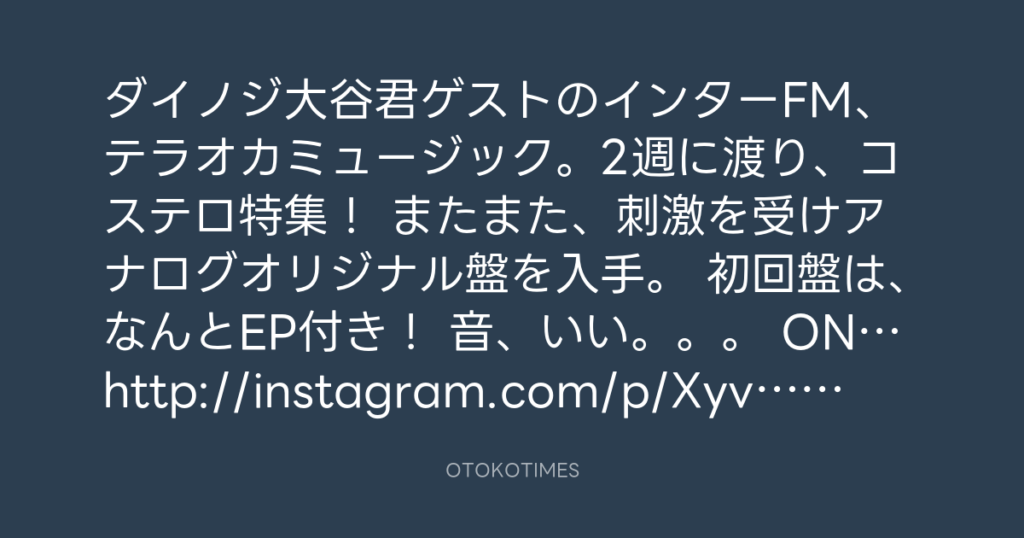ダイノジ大谷君ゲストのインターFM、テラオカミュージック。2週に渡り、コステロ特... -