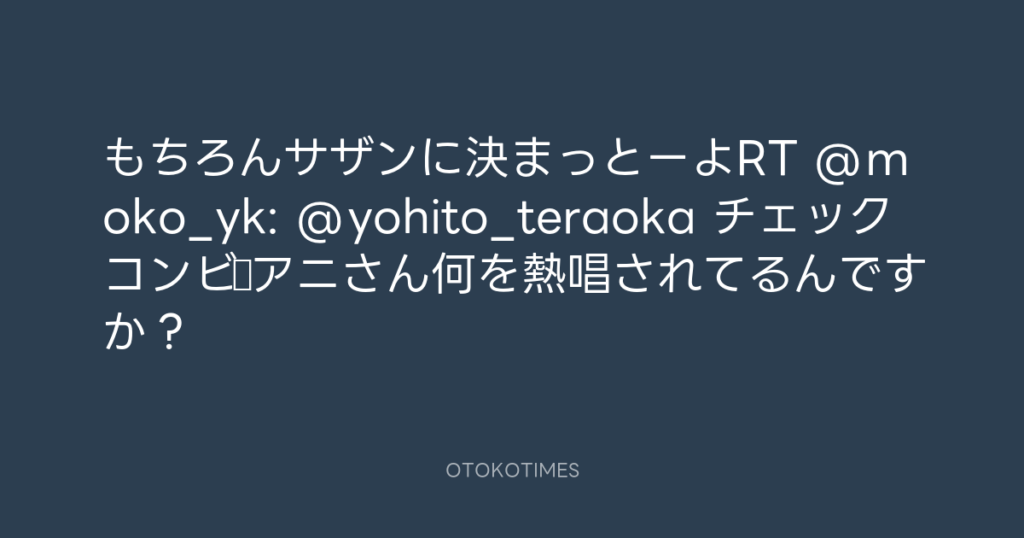もちろんサザンに決まっとーよRT @moko_yk: @yohito_teraoka チェックコンビ♪アニ... -