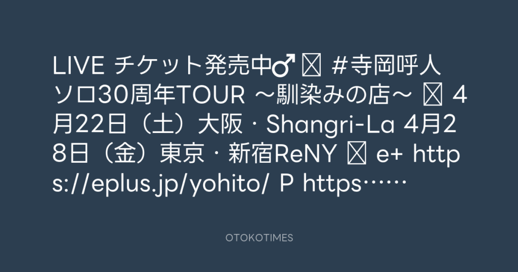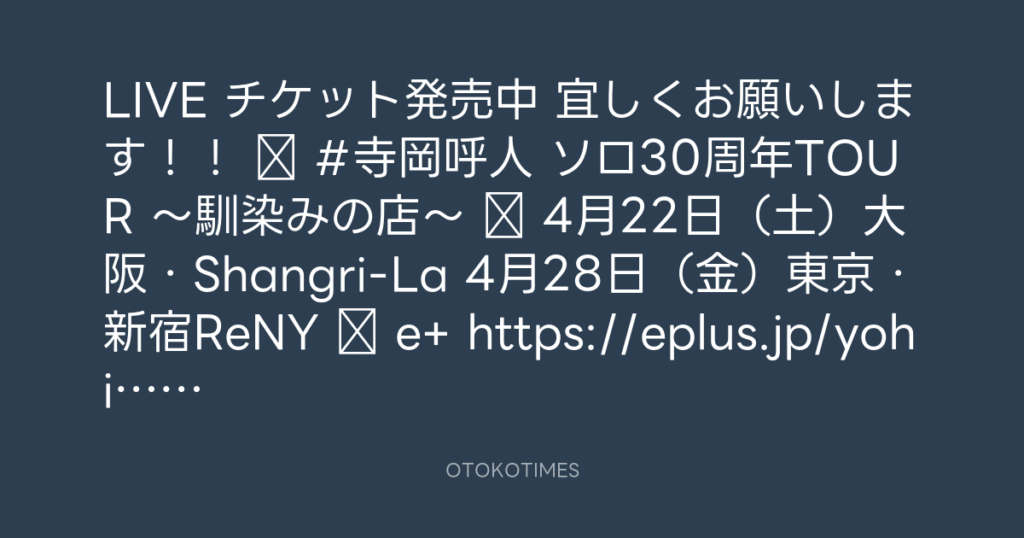 🌍LIVE🌎 🔥チケット発売中🙋♂️ #寺岡呼人 ソロ30周年TOUR ~馴染みの店~ 📍... -
