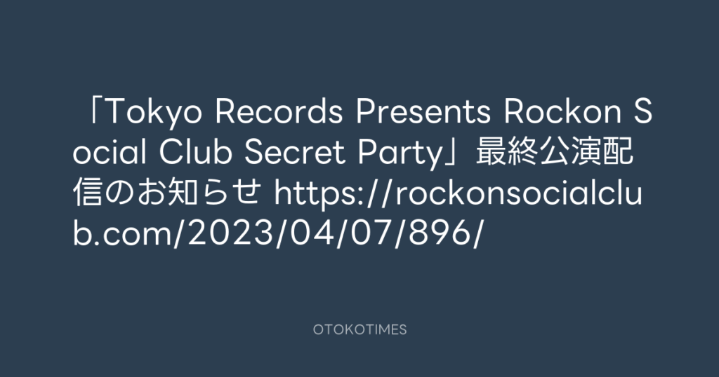 「Tokyo Records Presents Rockon Social Club Secret Party」最終公演配信のお知... -