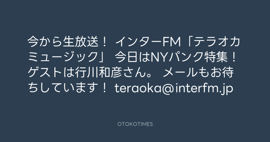 今から生放送! インターFM「テラオカミュージック」 今日はNYパンク特集! ゲスト... -
