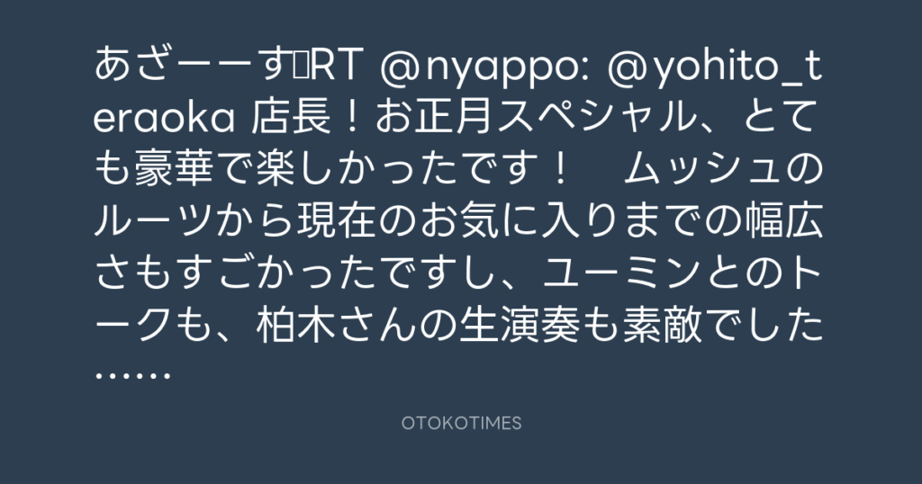 あざーーす☆RT @nyappo: @yohito_teraoka 店長!お正月スペシャル、とても豪華で楽... -