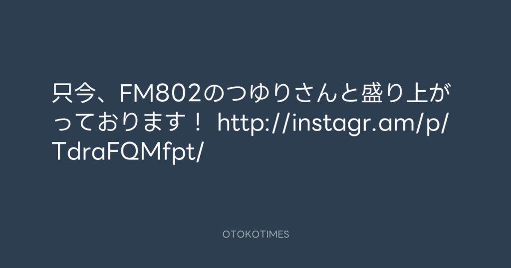 只今、FM802のつゆりさんと盛り上がっております! http://instagr.am/p/TdraFQMfpt/ -