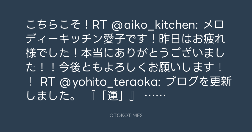 こちらこそ!RT @aiko_kitchen: メロディーキッチン愛子です!昨日はお疲れ様でし... -