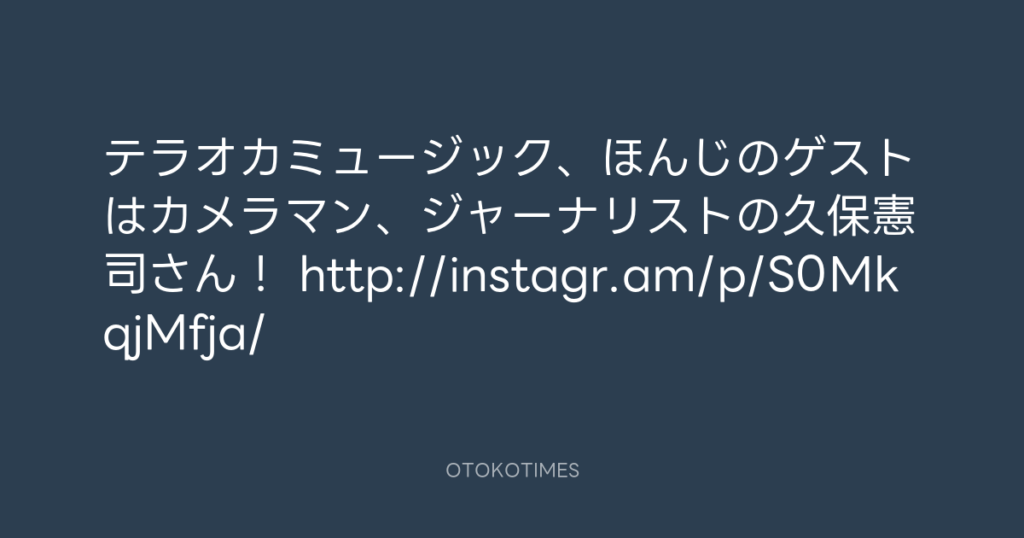 テラオカミュージック、ほんじのゲストはカメラマン、ジャーナリストの久保憲司さ...