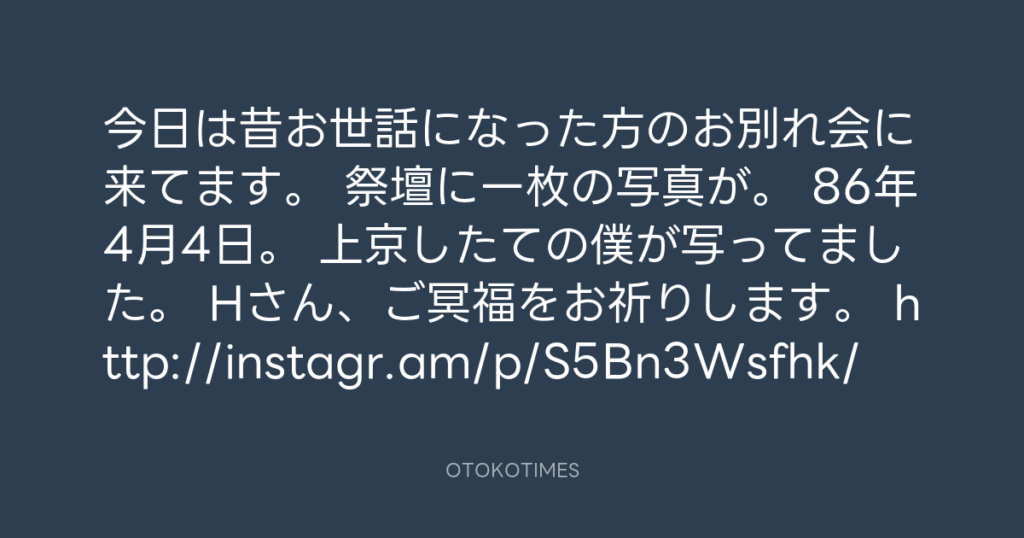 今日は昔お世話になった方のお別れ会に来てます。 祭壇に一枚の写真が。 86年4月4... -