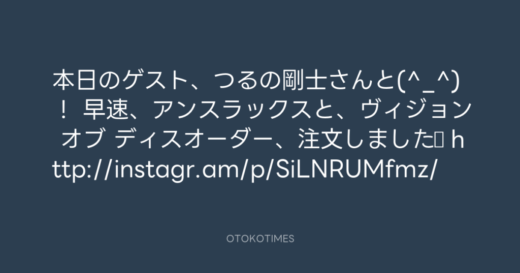 本日のゲスト、つるの剛士さんと(^_^)! 早速、アンスラックスと、ヴィジョン オブ... -