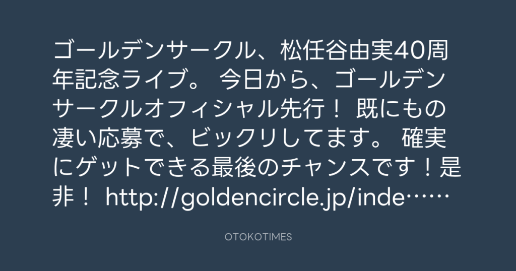 ゴールデンサークル、松任谷由実40周年記念ライブ。 今日から、ゴールデンサークル... -