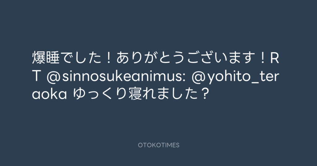 爆睡でした!ありがとうございます!RT @sinnosukeanimus: @yohito_teraoka ゆっく... -