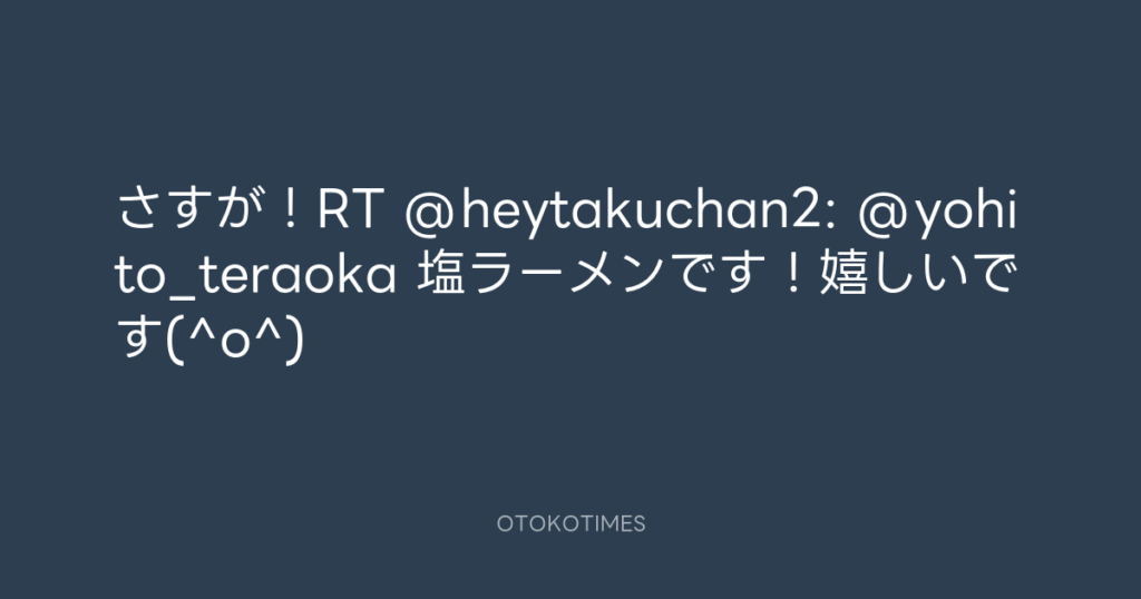 さすが!RT @heytakuchan2: @yohito_teraoka 塩ラーメンです!嬉しいです(^o^) -
