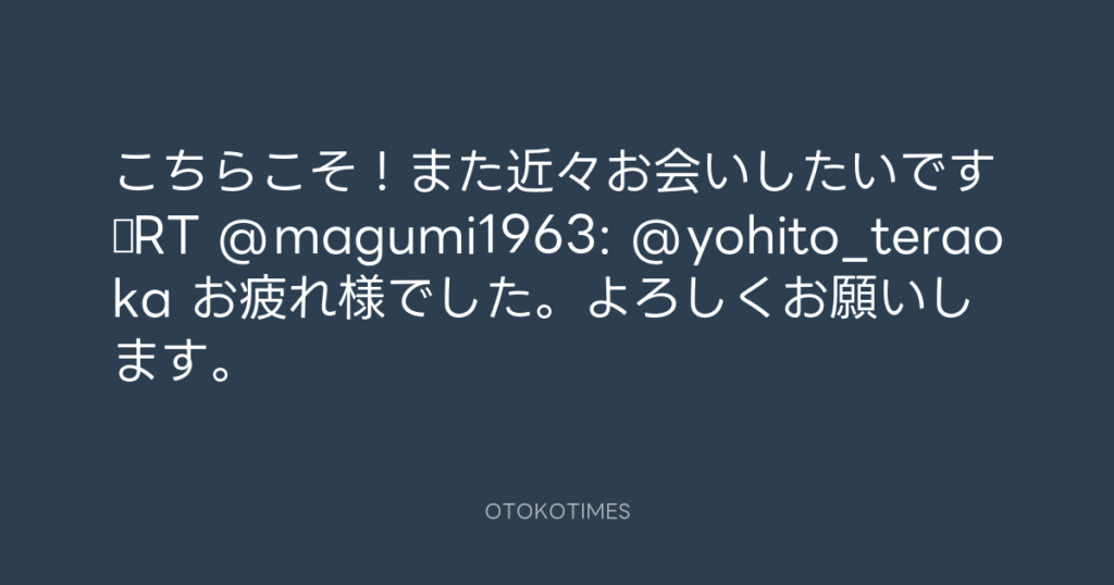 こちらこそ!また近々お会いしたいです♫RT @magumi1963: @yohito_teraoka お疲れ様... -