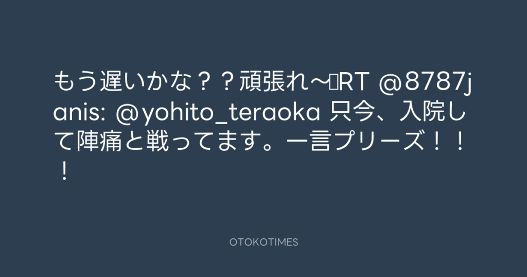 もう遅いかな??頑張れ〜♫RT @8787janis: @yohito_teraoka 只今、入院して陣痛と... -