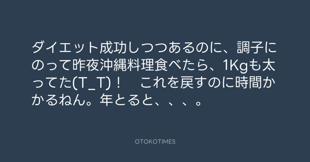ダイエット成功しつつあるのに、調子にのって昨夜沖縄料理食べたら、1Kgも太ってた...