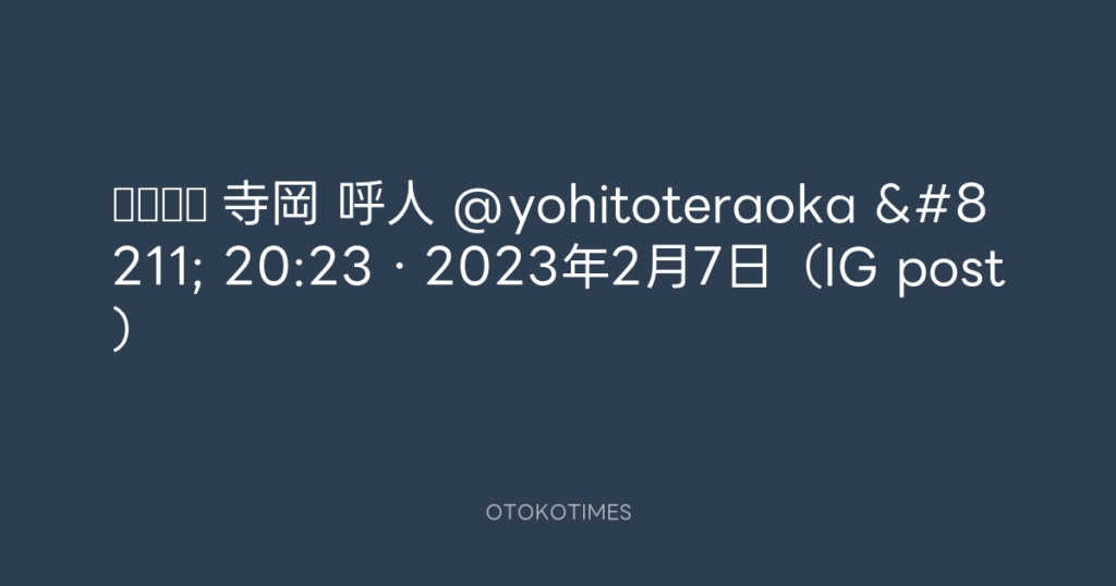 寺岡 呼人 @yohitoteraoka – 20:42・2023年2月7日(IG post)