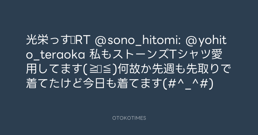 光栄っす♫RT @sono_hitomi: @yohito_teraoka 私もストーンズTシャツ愛用してます(≧... -