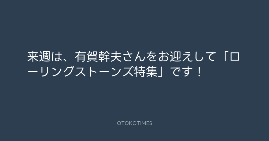 来週は、有賀幹夫さんをお迎えして「ローリングストーンズ特集」です! -