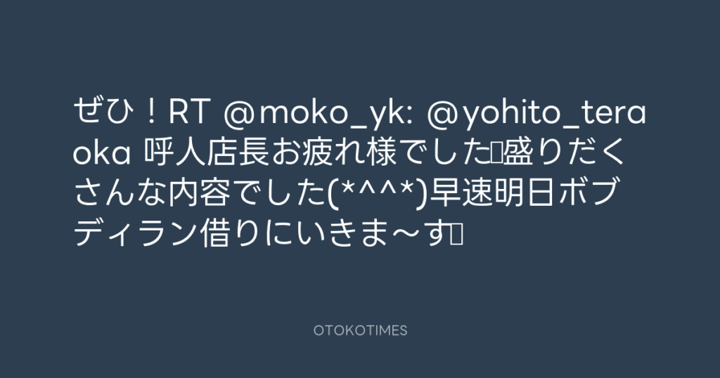 ぜひ!RT @moko_yk: @yohito_teraoka 呼人店長お疲れ様でした♪盛りだくさんな内容... -