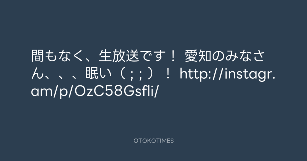 間もなく、生放送です! 愛知のみなさん、、、眠い( ; ; )! http://instagr.am/... -