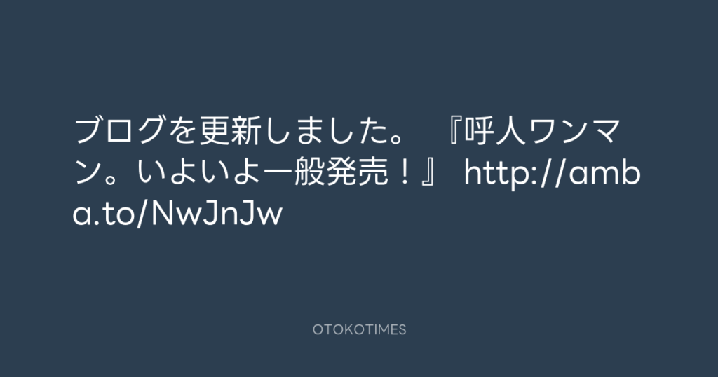 ブログを更新しました。 『呼人ワンマン。いよいよ一般発売!』 http://amba.to/Nw... -