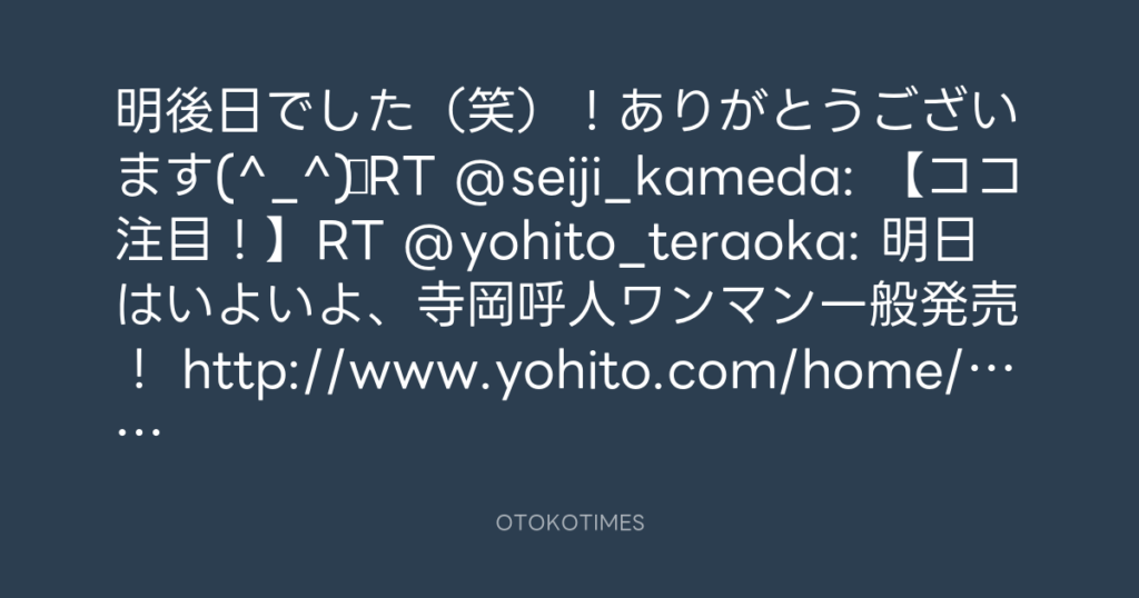 明日はいよいよ、寺岡呼人ワンマン一般発売! http://www.yohito.com/home/index.p... -