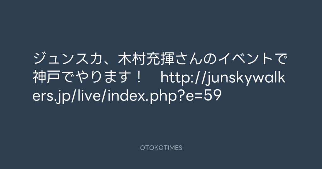 ジュンスカ、木村充揮さんのイベントで神戸でやります! http://junskywalkers.jp... -