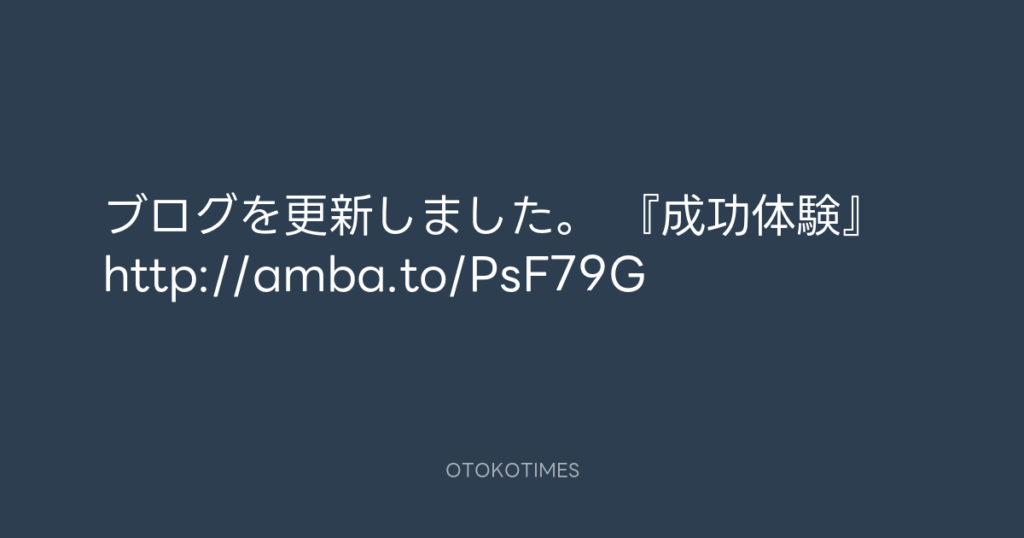 ブログを更新しました。 『成功体験』 http://amba.to/PsF79G -