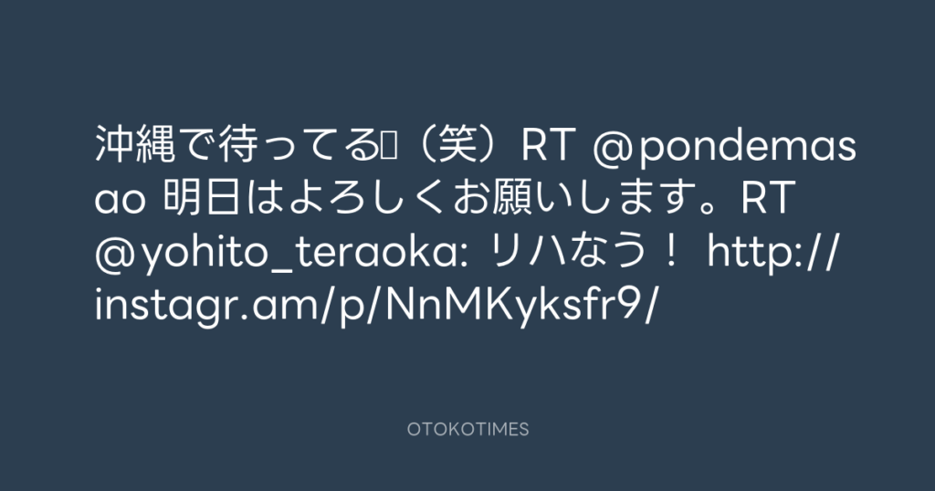 沖縄で待ってる☆(笑)RT @pondemasao 明日はよろしくお願いします。RT @yohito_te...