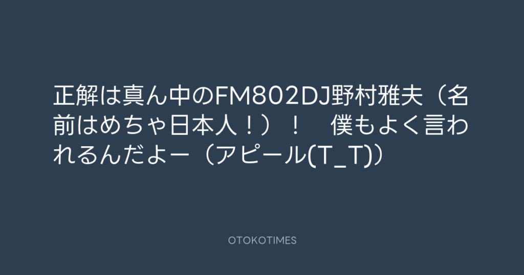 正解は真ん中のFM802DJ野村雅夫(名前はめちゃ日本人!)! 僕もよく言われるんだ... -