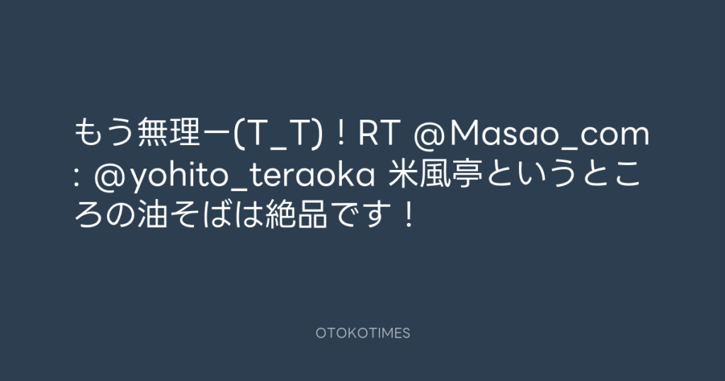 もう無理ー(T_T)!RT @Masao_com: @yohito_teraoka 米風亭というところの油そばは... -
