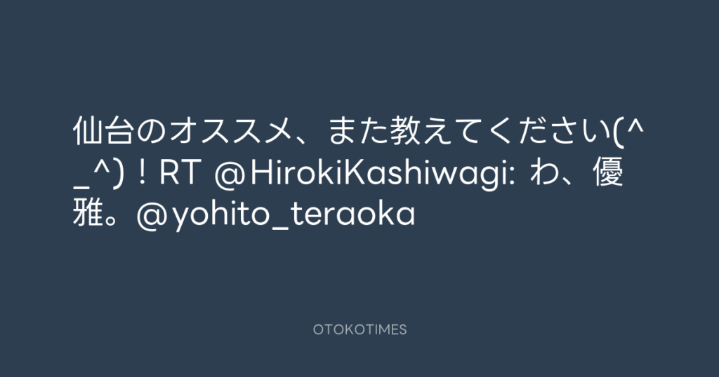 仙台のオススメ、また教えてください(^_^)!RT @HirokiKashiwagi: わ、優雅。@yohi... -