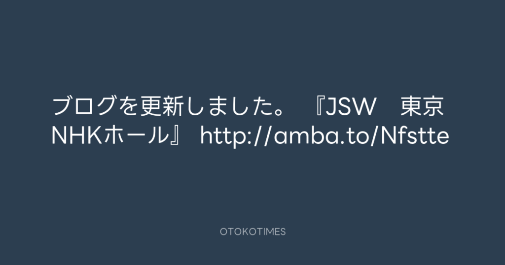 ブログを更新しました。 『JSW 東京 NHKホール』 http://amba.to/Nfstte -