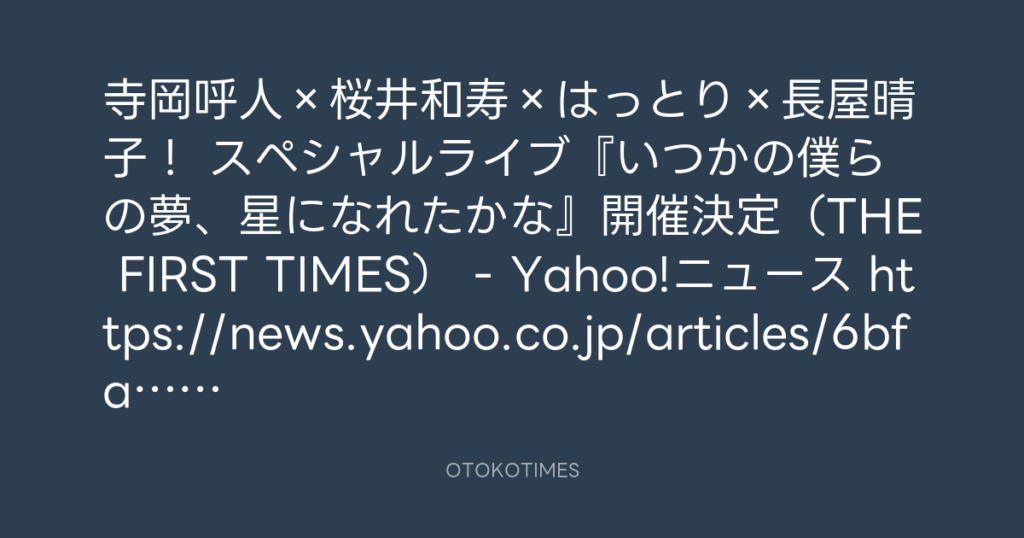 寺岡呼人×桜井和寿×はっとり×長屋晴子! スペシャルライブ『いつかの僕らの夢、星... -