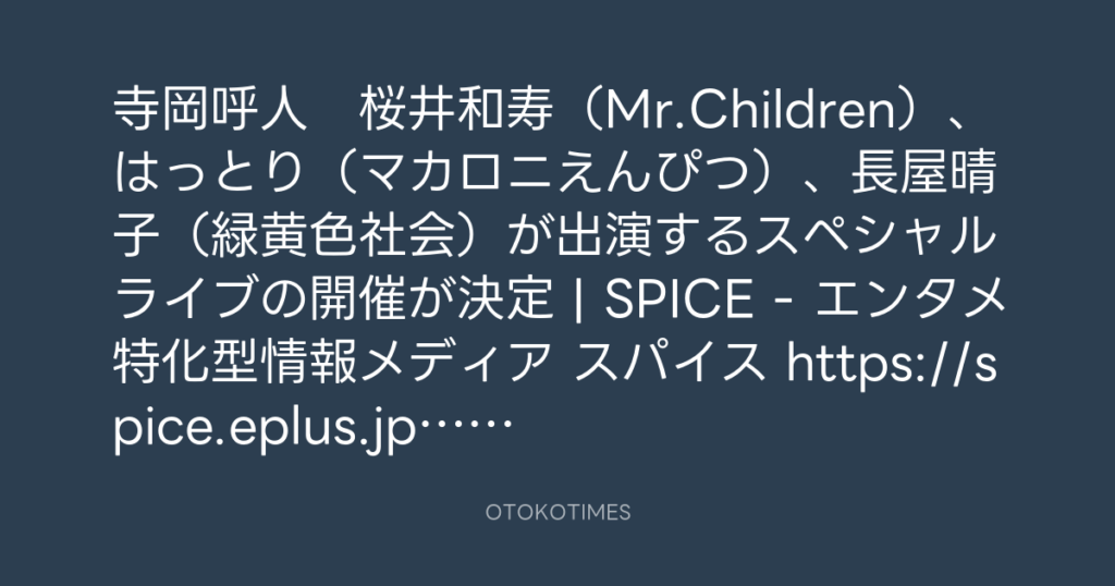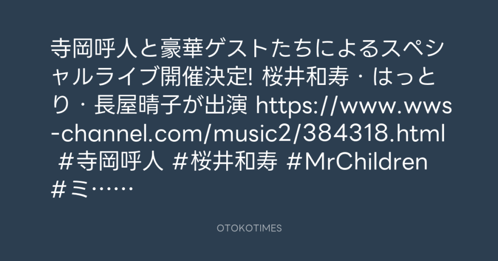 寺岡呼人と豪華ゲストたちによるスペシャルライブ開催決定! 桜井和寿・はっとり・... -