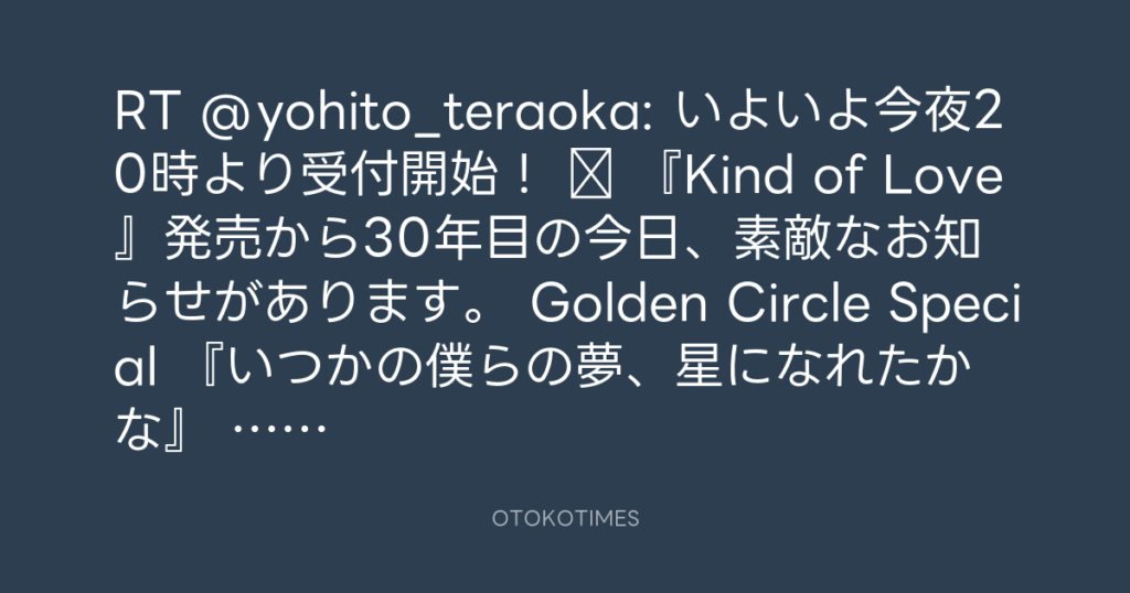 RT @yohito_teraoka: いよいよ今夜20時より受付開始! 『Kind of Love』発売から... -