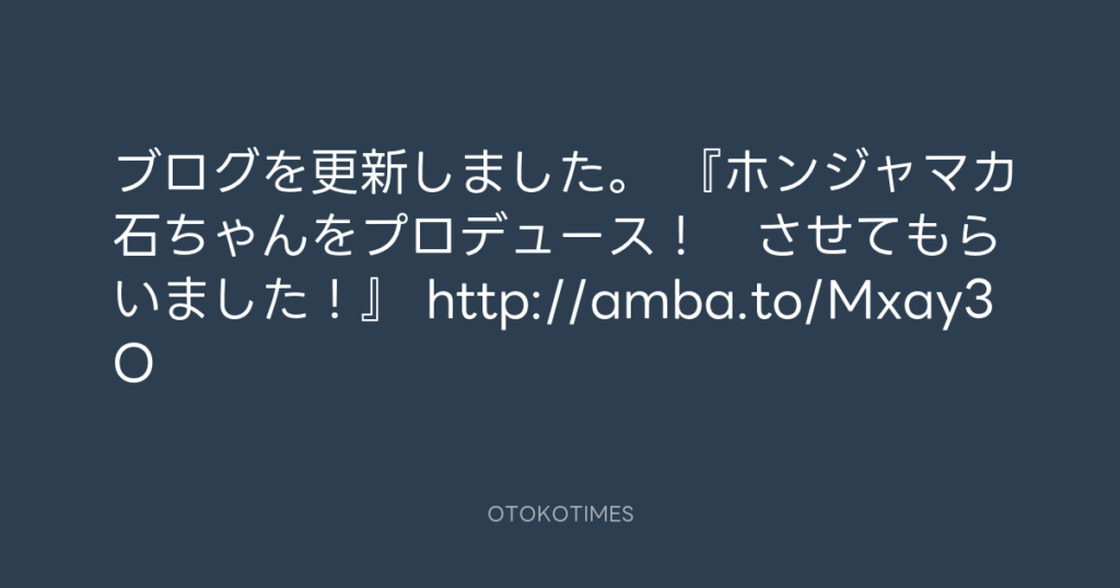 ブログを更新しました。 『ホンジャマカ石ちゃんをプロデュース! させてもらいま...