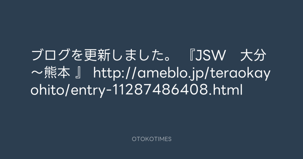 ブログを更新しました。 『JSW 大分〜熊本 』 http://ameblo.jp/teraokayohito/en... -