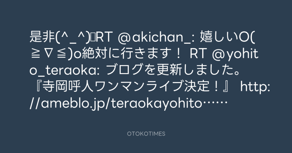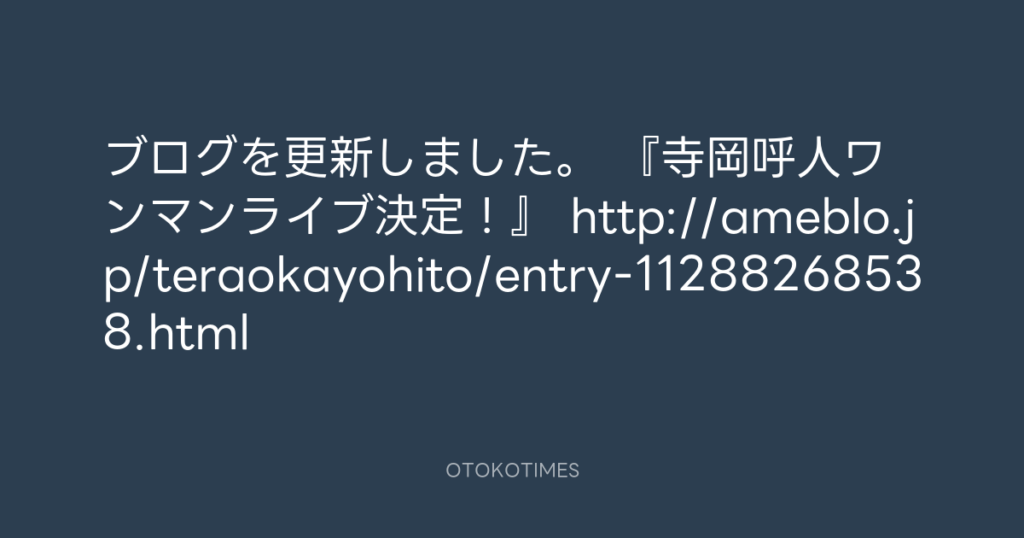ブログを更新しました。 『寺岡呼人ワンマンライブ決定!』 http://ameblo.jp/tera... -