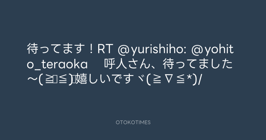 待ってます!RT @yurishiho: @yohito_teraoka 呼人さん、待ってました~(≧▽≦)☆嬉... -