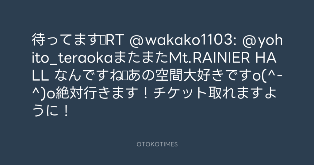 待ってます☆RT @wakako1103: @yohito_teraokaまたまたMt.RAINIER HALL なんですね♪... -