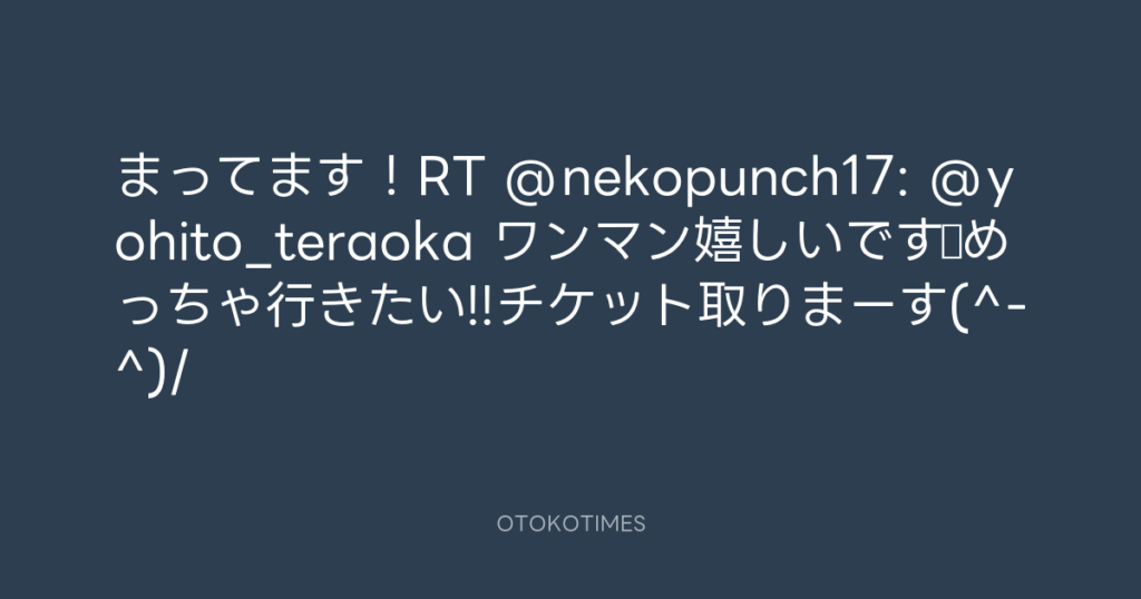 まってます!RT @nekopunch17: @yohito_teraoka ワンマン嬉しいです♪めっちゃ行き... -