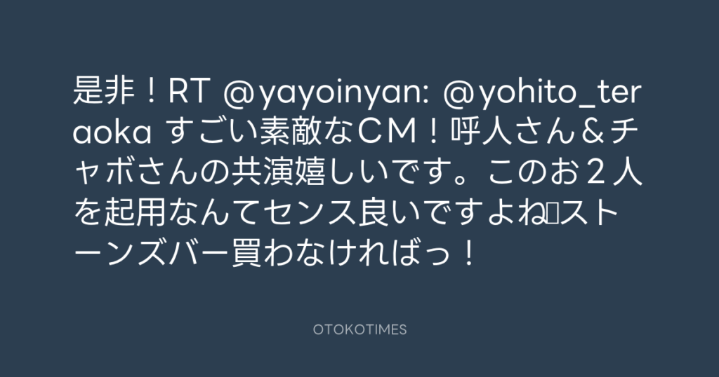 是非!RT @yayoinyan: @yohito_teraoka すごい素敵なCM!呼人さん&チャボさんの...
