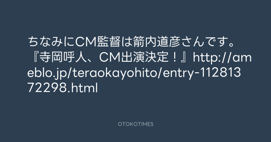 ちなみにCM監督は箭内道彦さんです。 『寺岡呼人、CM出演決定!』http://ameblo.j... -