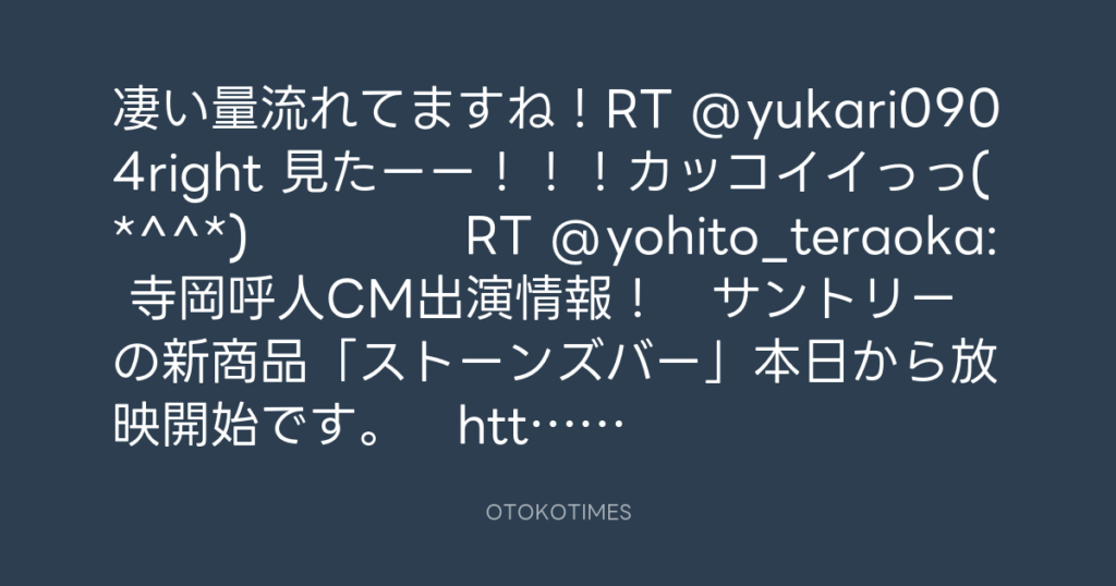 すごいーRT @amutarouz: @yohito_teraoka 呼人さーん!!いまCM見ました(๑´`๑)♡めっ... -