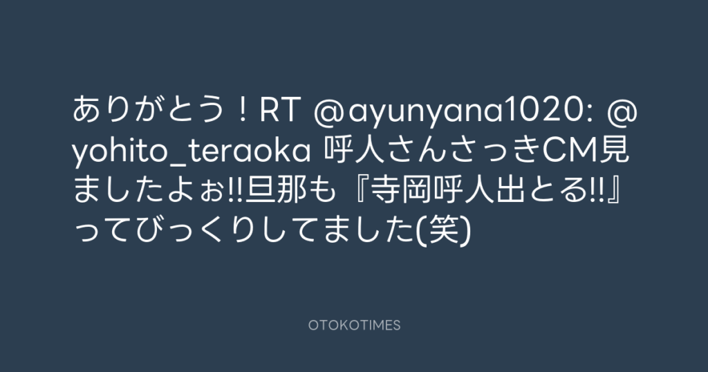 ありがとう!RT @ayunyana1020: @yohito_teraoka 呼人さんさっきCM見ましたよぉ!!... -