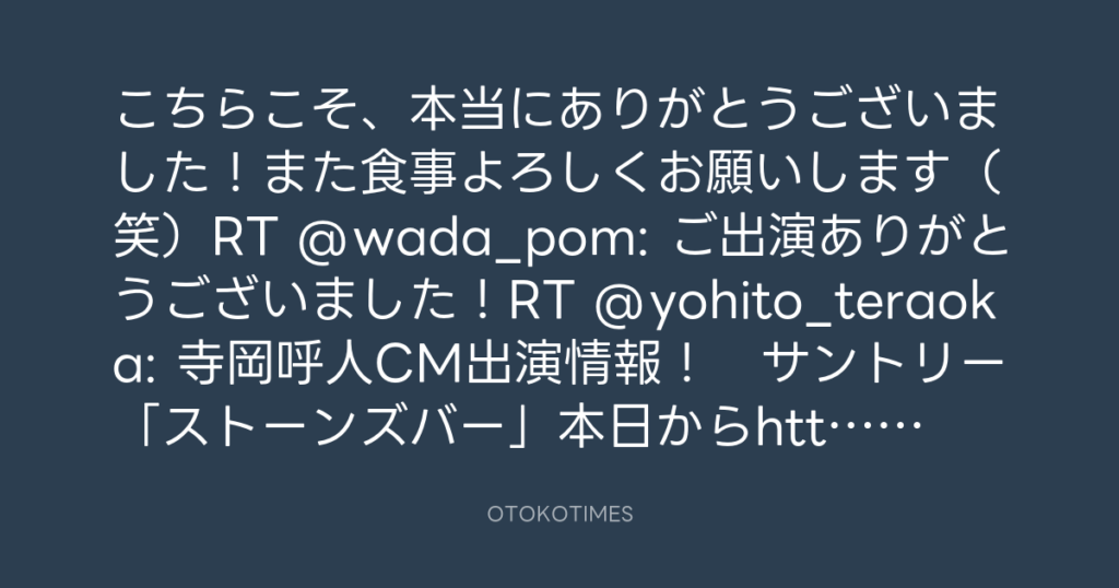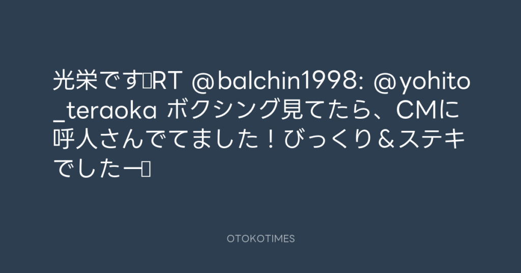 光栄です♫RT @balchin1998: @yohito_teraoka ボクシング見てたら、CMに呼人さんで... -