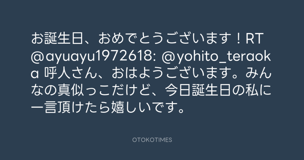 お誕生日、おめでとうございます!RT @ayuayu1972618: @yohito_teraoka 呼人さん、... -