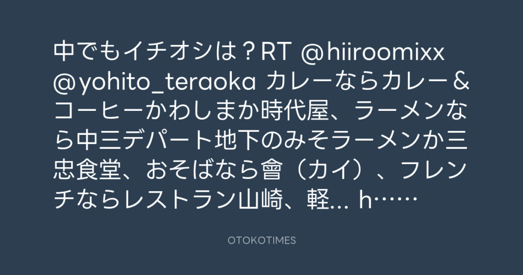 中でもイチオシは?RT @hiiroomixx @yohito_teraoka カレーならカレー&コーヒーか... -