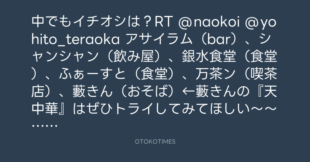 中でもイチオシは?RT @naokoi @yohito_teraoka アサイラム(bar)、シャンシャン... -