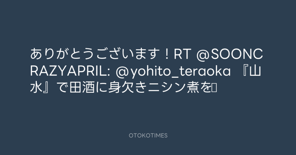 ありがとうございます!RT @SOONCRAZYAPRIL: @yohito_teraoka 『山水』で田酒に身... -